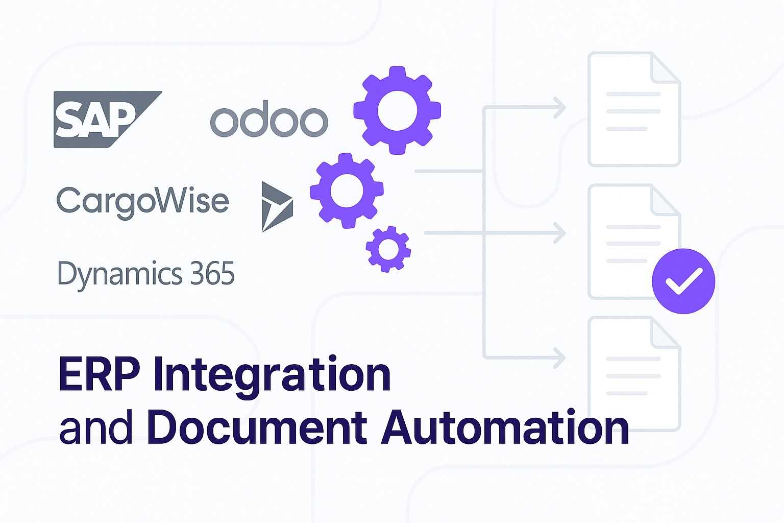 Integrating document automation with ERP systems like SAP, Odoo, CargoWise, and Dynamics 365 creates a connected, intelligent workflow where data moves instantly and accurately between departments.